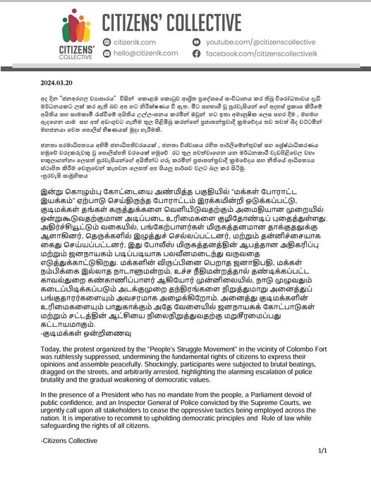 2024.03.20 අද දින "ජනඅරගල ව්යාපාරය" විසින් කොළඹ කොටුව ආශ්රිත ප්රදේශයේ සංවිධානය