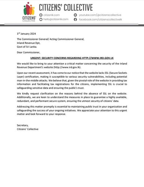 දේශීය ආදායම් බදු දෙපාර්තමේන්තුවේ නිළ වෙබ් අඩවියෙහි දත්ත වල සුරක්ෂිතතාවය සහතික කිරීම පිළිබදව ගැටළු සහගත තත්වයක්
