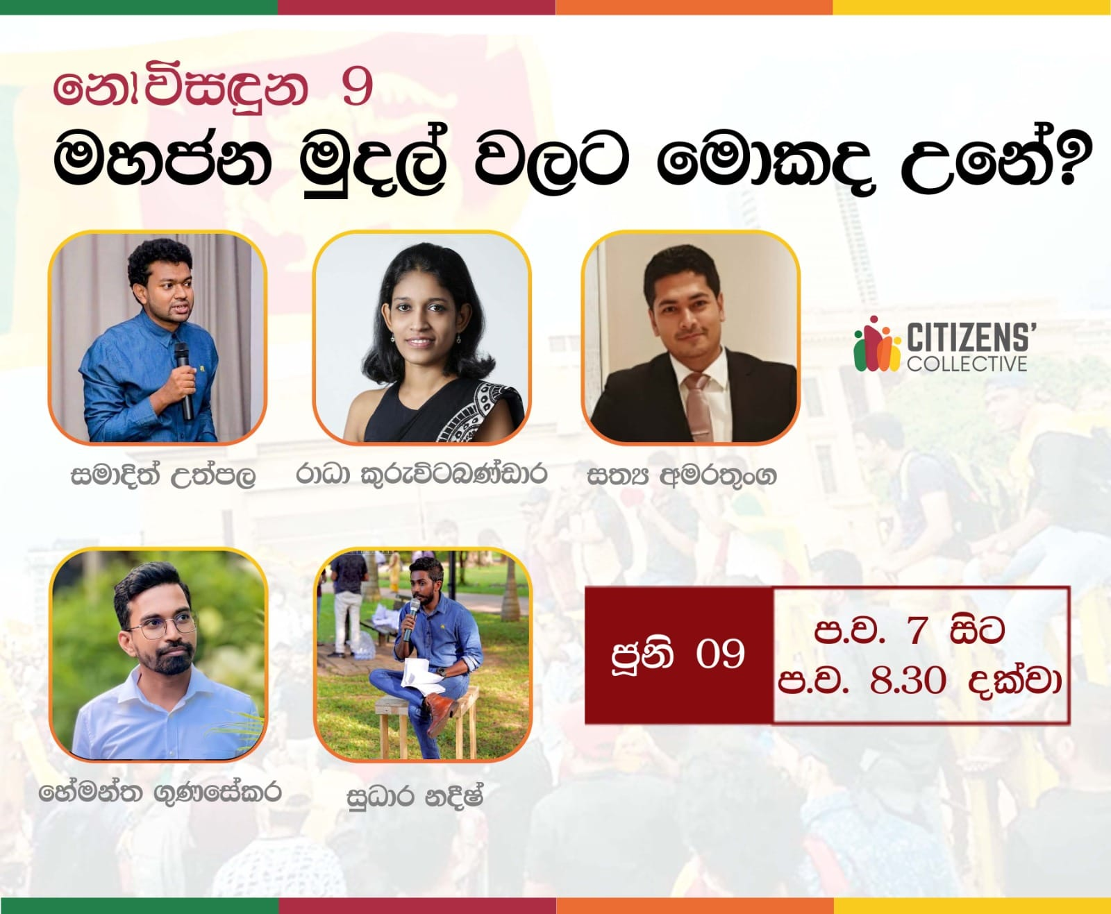 නොවිසඳුන 9මහජන මුදල් වලට මොකද උනේ? 2024 ජූනි 09ප.ව 7.00 සිට Citizens Collective ඔස්සේ සජීවීව. සුපුරුදු " 09 වැඩසටහනින් " අපි මෙවර කතා